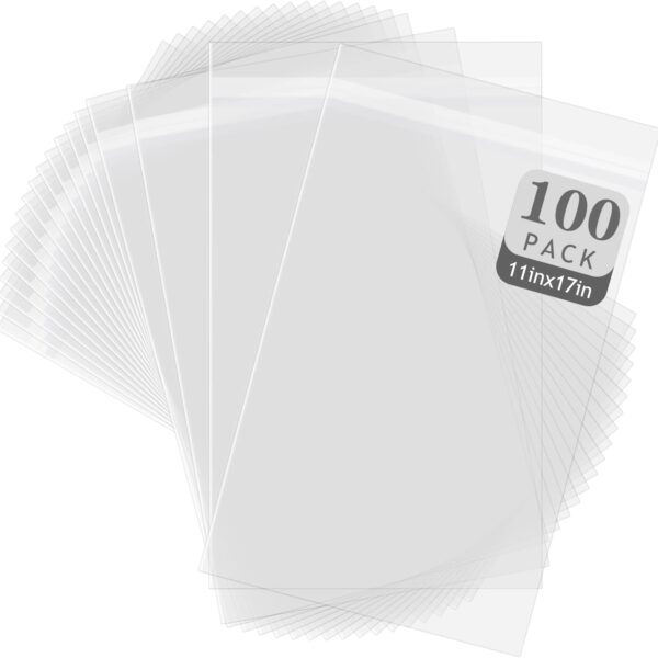 Golden State Art, 100 Pack Clear Bags for 11×17 Mats, Pictures, Acid-Free, 11 3/7″x17 1/2″