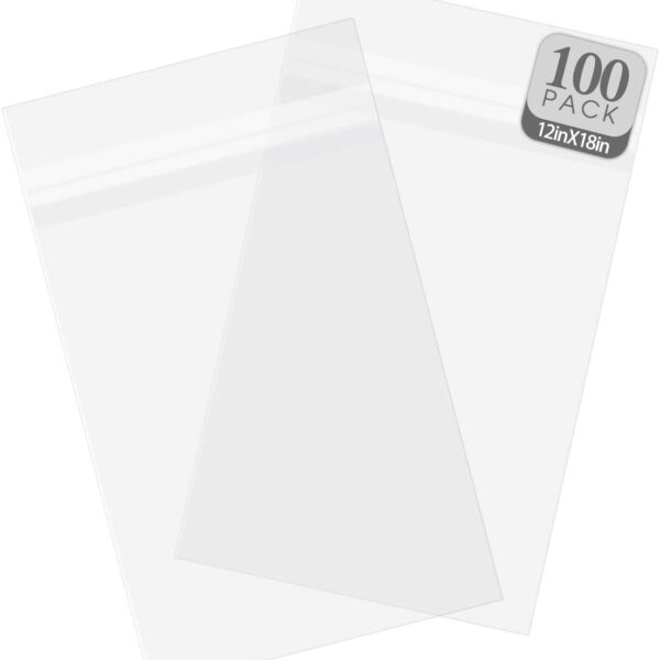 Golden State Art, 100 Pack Clear Bags for Mats, Pictures, Acid-Free, 12-7/16″ x 18-1/4″