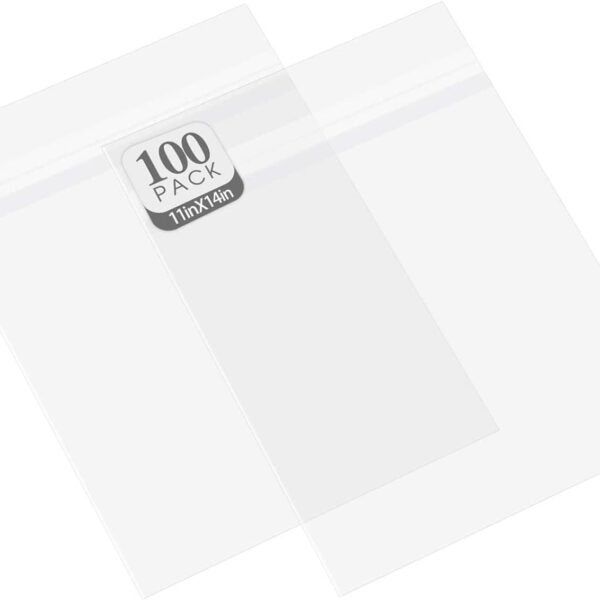 Golden State Art, Pack of 100, Acid-Free Crystal Clear Sleeves Storage Bags for Photo Prints Framing Mats Mattes (Bag Size: 11 3/8 x 14 1/8 inches for 11×14 Mats)