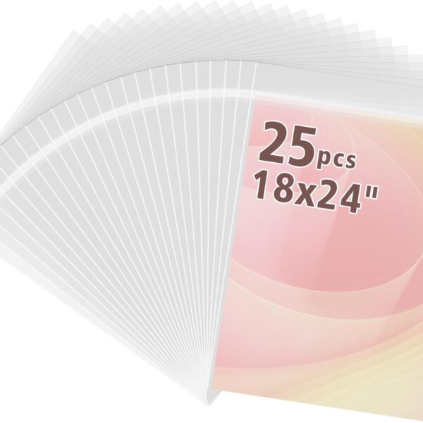 Frametory, 25 Pack 18 3/8″ x 24 1/8″ Acid-Free Clear Plastic Bags, Self Seal Crystal Photo Sleeves for 18X24 Art Prints, Pictures & Framing Mat Mattes