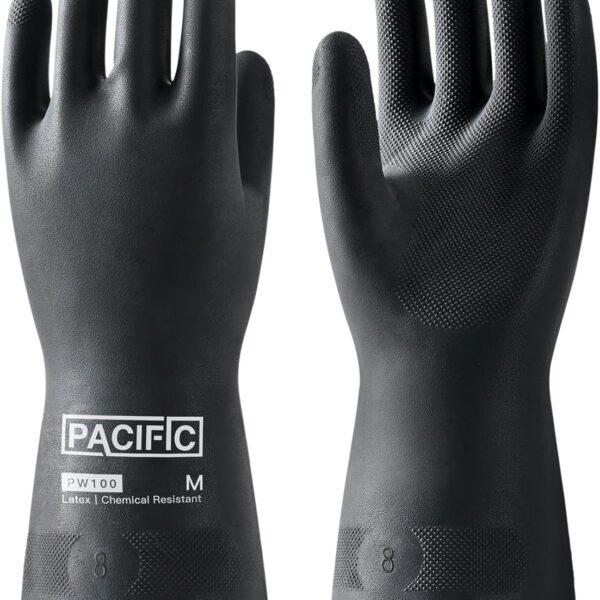 PACIFIC PPE Heavy Duty Latex Chemical Gloves, Strong Acid Resistance Rubber Gloves, Against Alkali and Oil, 18″