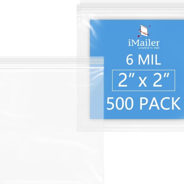 iMailer – 6 Mil Heavy Duty Zip Bags – 2″ x 2″ 500 Pack – Durable Storage Bags for Food, Crafts, Hardware, and Organizing