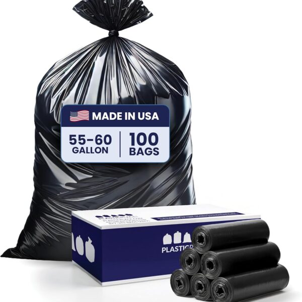 Plasticplace 55-60 Gallon Trash Bags │ 1.0 Mil │ Black Heavy Duty Garbage Can Liners │ 38” x 58” (100 Count)