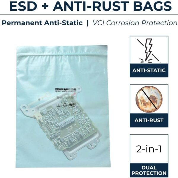 ESD Anti-Static Poly Bags with VCI Anti-Rust Protection (10×12 inches – 3 Mil) Reclosable Zip – Cortec EcoSonic VpCI-125 HP (Pack of 10 bags)