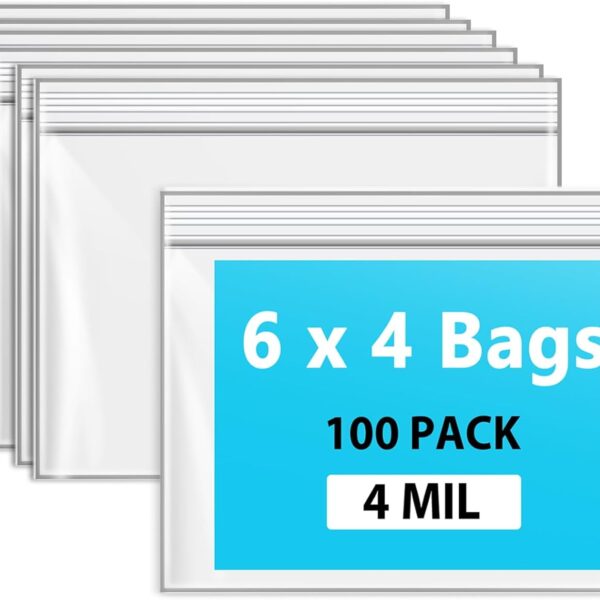 6″ x 4″ Zip Bags, 4 Mil Heavy Duty Bait Bags Clear Plastic Zipper Lock Sleeves, Pack of 100