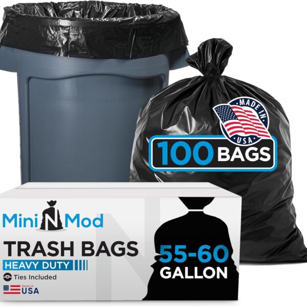 55-60 Gallon Trash Bags Heavy Duty | 100 Count | Large Black Garbage Bags for Outdoor, Leaf, Commercial Use | Fits 50 Gallon, 55 Gal, 60 Gal Trash Cans