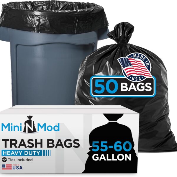 55-60 Gallon Trash Bags Heavy Duty | 50 Count | Large Black Garbage Bags for Outdoor, Leaf, Commercial Use | Fits 50 Gallon, 55 Gal, 60 Gal Trash Cans