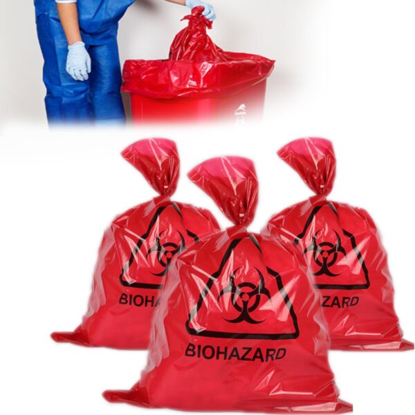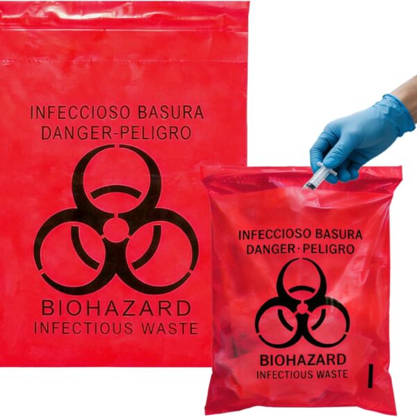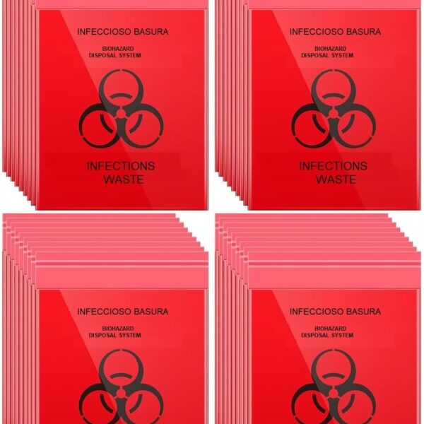 100pcs 9x13in/23x33cm Stick-On Biohazard Infectious Red Waste Bags