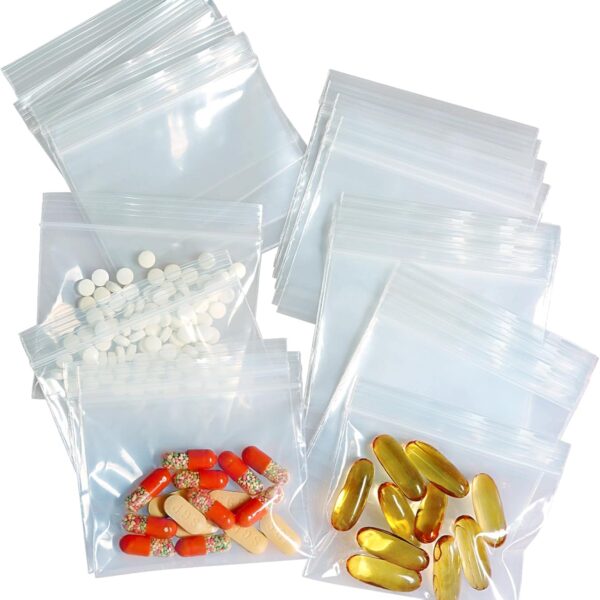 100 Pack Pill Pouch Bags – (4″ X 2.75″) Thickness is 6 Mil, Portable Plastic Pills Bag Hold Vitamin, Supplements, Medication, and Vitamin Storage