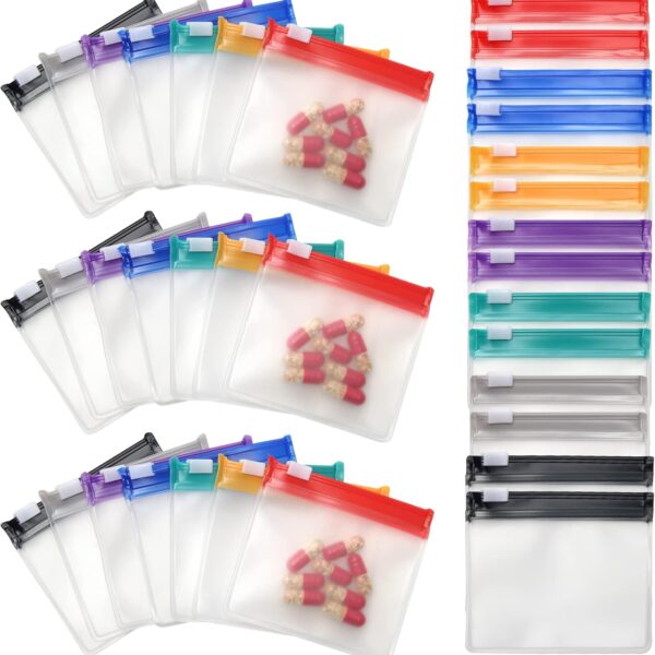 39 Pcs Pill Pouchs Zippered Pill Bags for Travel Reusable with 28Pcs Small Pill Organizer Pouches and 10pcs Sticker for Medicine Organizer Bags