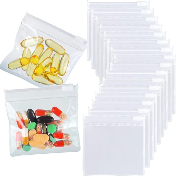 12 PCS Zippered Reusable Pill Storage Pouch Bags – Clear Plastic Pill Bags with Slide Lock for Small Items