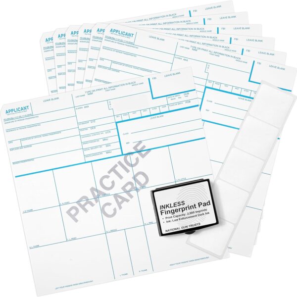 National Gun Trusts – Made in USA – FD-258 Fingerprint Card Kit Full 2026 (6 Cards + 1 Practice Card) w/Reusable Ink Pad, Correction Tabs, Instructions