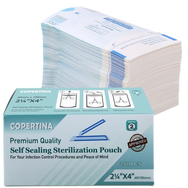 200 Pcs Self Sealing Sterilization Pouches 2.25” x 4” | Dual Indicators Autoclave Sterilizer Bags for Dental Medical Instruments Clean Tools