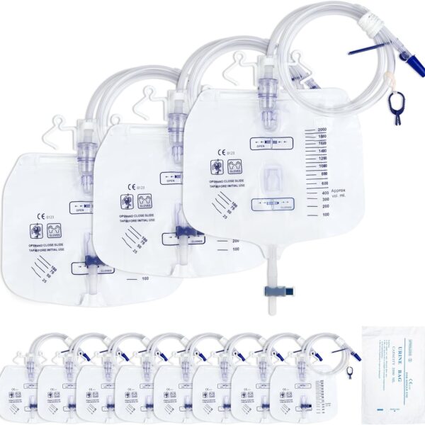 2000mL Sterile Urinary Drainage Bag, 10 Pack Overnight Catheter Bags with Anti-Reflux Drip Chamber, Professional Men Women Urine Bags with 48″ Drainage Tube