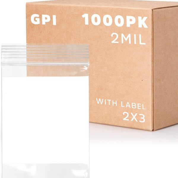 2Mil Small Plastic Bags 2 x 3 inches, 1000 pack ZIP Bags, Write on White Block, Reclosable Zipper small plastic Storage Baggies GPI Brand, for Daily Vitamin, Pill, Jewelry, Candy