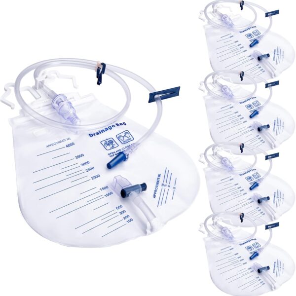 5 Pack 4000ml Sterile Urinary Drainage Bag, Catheter Bags with Anti-Reflux Chamber and 48″ Drainage Tube,Professional Men Women Overnight Bedside Urine Bag