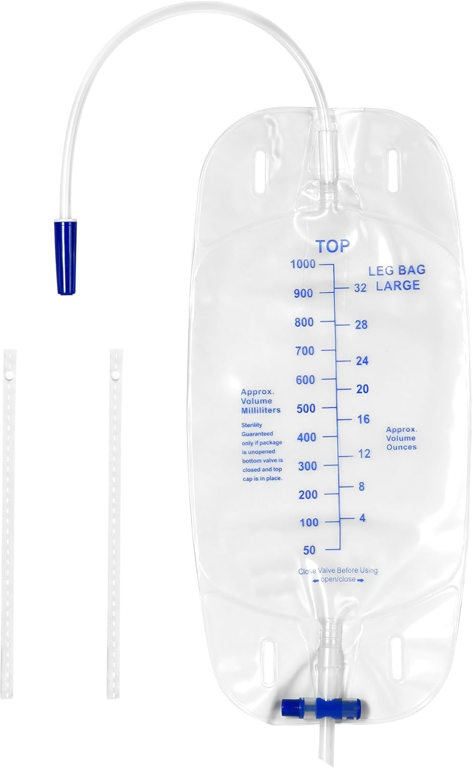 5 Pack Urinary Drainage Bag 1000ml/cc Catheter Leg Bag, Anti-Reflux Valve, Easy Flip Drain, Elastic Adjustable Cloth Straps, Individual Package