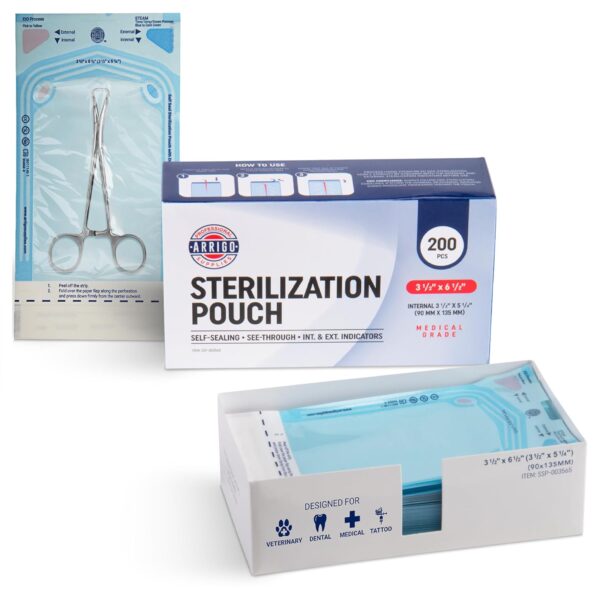 Arrigo Self-Sealing Sterilization Pouches 3.5″ x 6.5″ – 200 Count – Autoclave Bags with Internal & Dual (Int/Ext) Indicators – Latex-Free, Medical-Grade for Dental, Health & Beauty