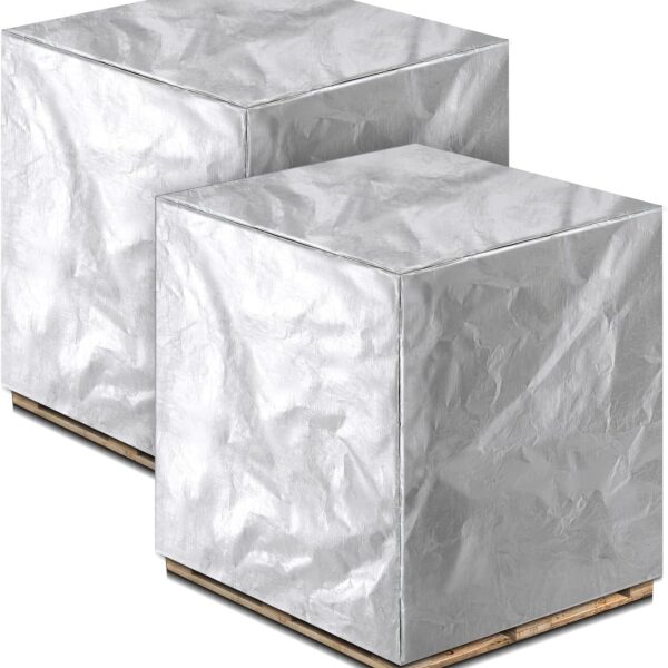 2 Pcs Silver 48″ x 60″ x 48″ Heavy Duty Pallet Covers Outdoor PE Waterproof Pallet Cover Silver Tarp Waterproof for Construction Outdoor Storage