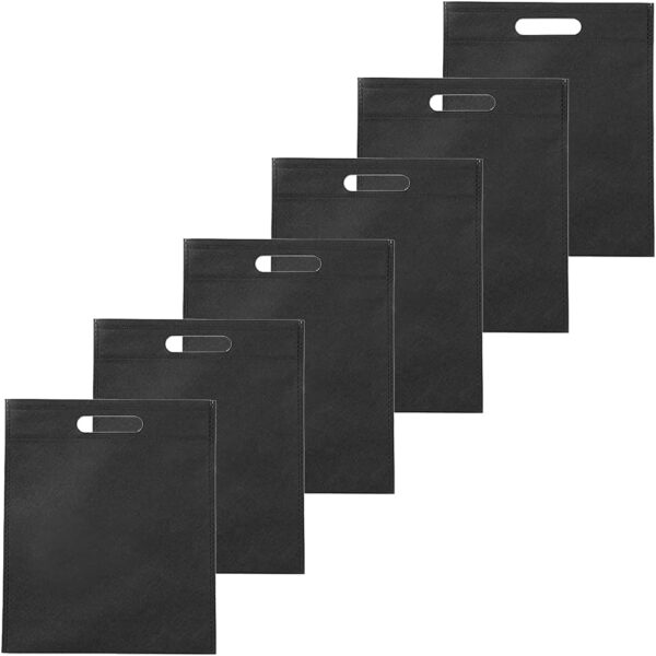 Muka 6 PCS Non-woven Die-cut Handle Tote Bag Heat Sealed Shopping Bag Goodie present Bag for Merchandise Packaging-Black-12″x16″