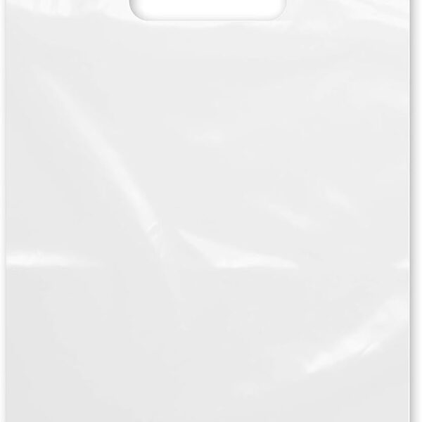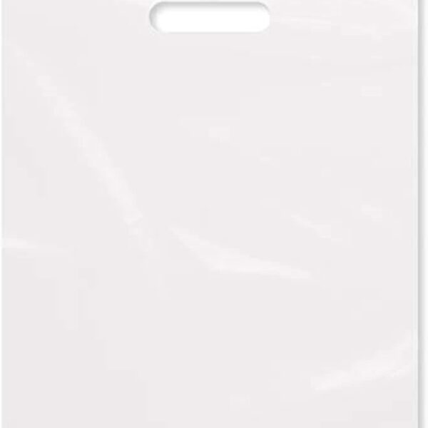 Purple Q Crafts Plastic Bag With Die Cut Handle Bag 12″ x 15″ White Plastic Merchandise Bags 100 Pack for Retail, Gifts, Trade Show and More