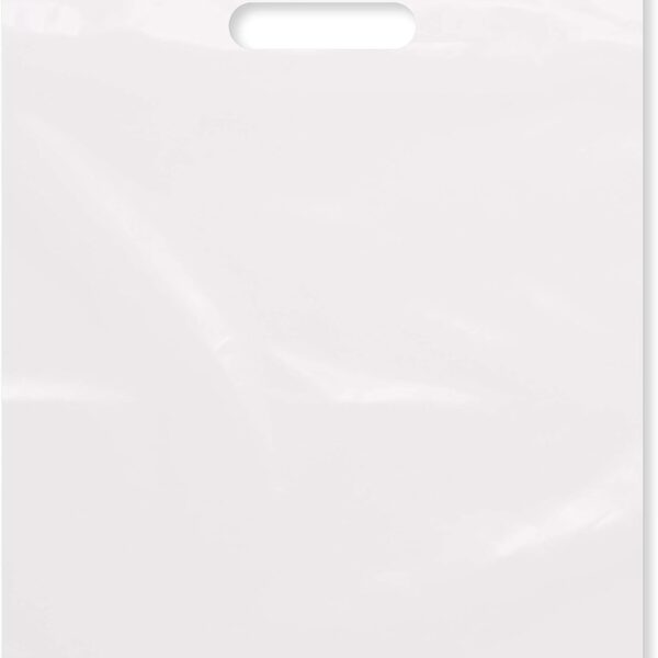 Purple Q Crafts Large Plastic Bag with Die Cut Handle Bag 18″x18″ White Plastic Merchandise Bags 50 Pack for Retail, Gifts, Trade Show and More