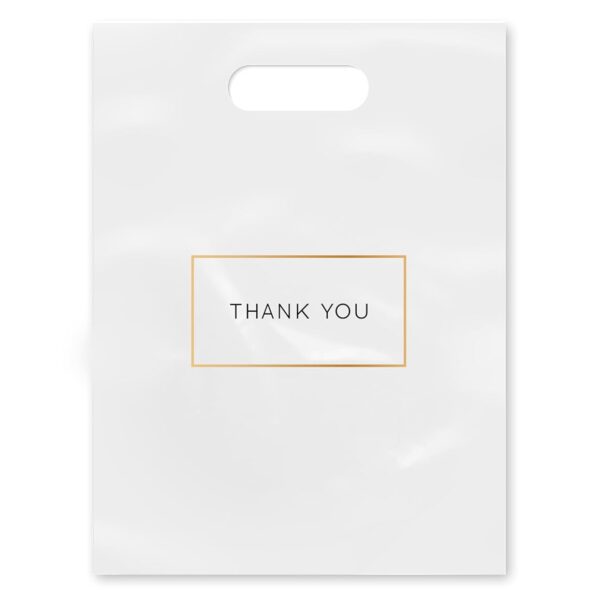 Purple Q Crafts Die Cut Plastic Shopping Bags with Thank You Logo 9″ x 12″ Boutique Bags with Handles 50 Pack for Merchandise, Gifts, Trade Shows and More