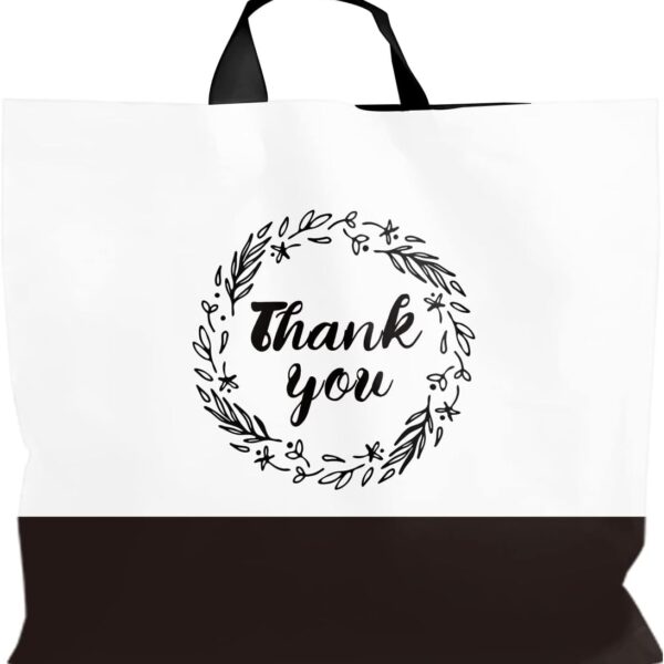 Thank You Plastic Shopping Bags for Small Businesses Extra Large Thick Bulk Merchandise Gift Bags with Handles for Customers Party Favors, Black 50 Pack