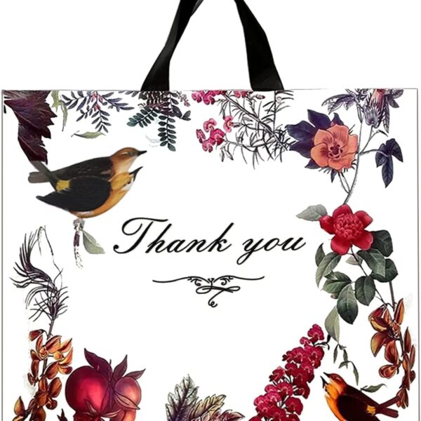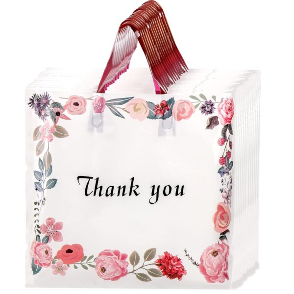 WAKAKO 60 Pack Thank You Bags for Business, Reusable Plastic Shopping Retail Gift Bags with Loop Handle, Retail Boutique Merchandise Use Eco-Friendly Floral (18″ W x 16″ H)