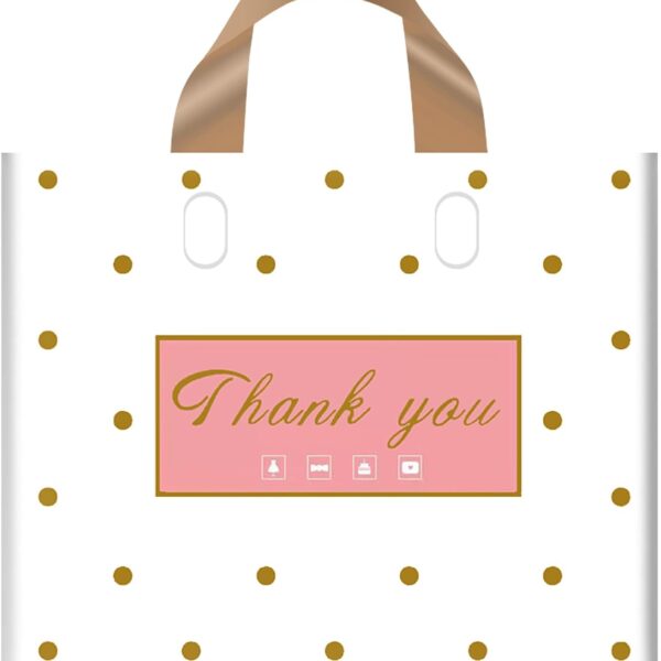 Thank You Bags – 50 Pack Plastic Bags for Small Business, Retail, Parties & Favors (Polka Dot, Medium 12″x14″)