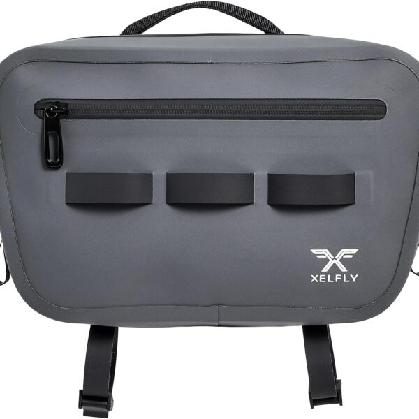 Waterproof Fishing Waist Bag with Rod Holder, Padded Waist Straps & Gear Loops – Submersible Zipper, Rugged Top Handle, Adjustable Attachments (Gray)