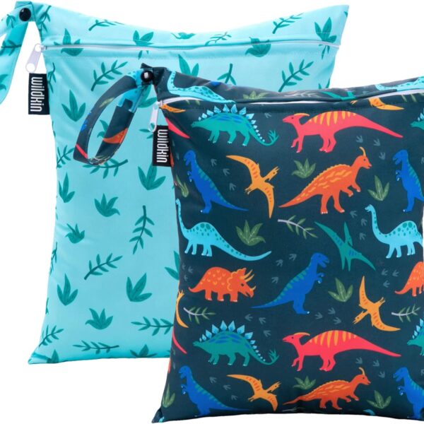 Wildkin Wet Bag Set for Boys, & Girls – Durable Zipper with Snap Loop Handle, Reusable Water-Resistant Bags for Beach, Pool, Travel & Gym (Jurassic Dinosaurs)