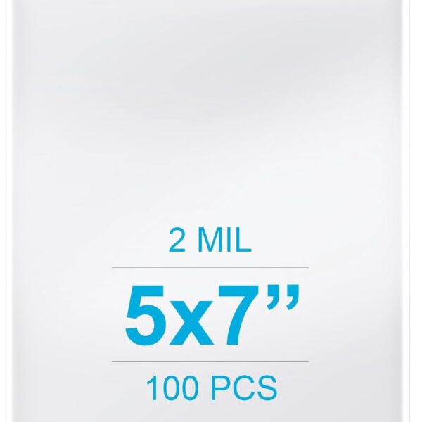 5”x 7”, (Pack of 100) 2 mil Thick Clear Plastic Reclosable Zip Poly Bags with Resealable Lock Seal Zipperr, Clear Small Zip Bag, Jewelry, Candy, Storage, Packaging & Shipping…
