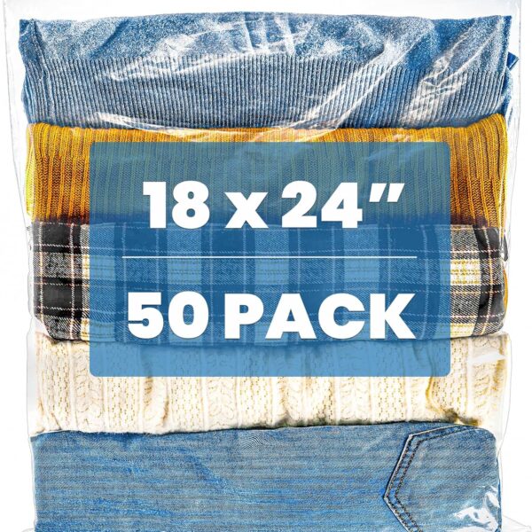 Elsjoy 50 Pack 18″ x 24″ Large Reclosable Storage Bags, 5 Gallon Resealable Zipper Plastic Bags for Clothes, Clear Reusable XL Zip Bags for Moving, Food, Clothing