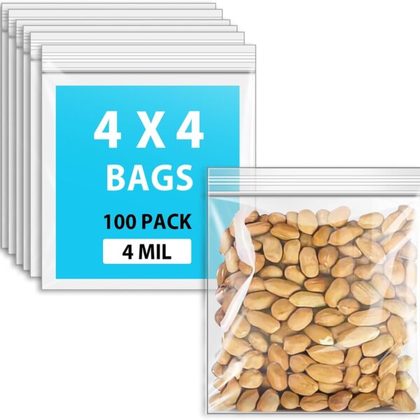4×4 Zip Plastic Bags, 4 Mil Heavy Duty Zipper Reclosable Clear Plastic Poly Bags, 4″ x 4″ (Pack of 100)