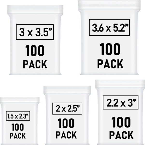 500 Pcs Small Plastic Zip Bags, 5 Sizes, 2 Mil Thick Clear Reclosable Poly Baggies for Jewelry, Treats, Candy, Party Favors, Storage