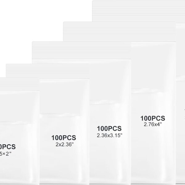 500 Pcs Small Plastic Bags, Small Bag, Mini Baggies, Jewelry Bag Clear Plastic, 5 Assorted Sizes, Resealable Poly Bags for Pill, Storage, Candy, Packaging
