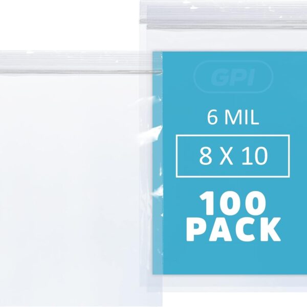8″ X 10″ Reclosable Zip Bags, 6 Mil Extra Heavy-Duty – Pack Of 100, 1/2 Gallon, Clear Plastic Zipper Lock Bags, Resealable Poly Baggies For Clothing, Tools, Sharp Objects, Packaging &