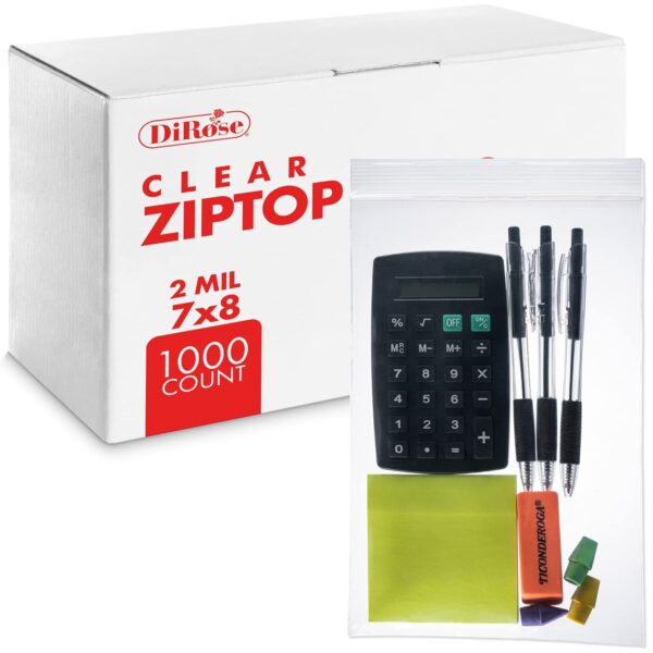Dirose 7″ x 8″ Clear Reclosable Poly Bags – Pack of 1000, 2 Mil Thickness – Resealable Plastic Zip Bags for Snacks, Hardware, Arts & Crafts, and Storage