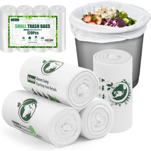 Small Trash Bags 1.2 Gallon, Biodegradable Gallon Waste Bag, Mini Compostable Strong Bathroom Wastebasket Can Liners Garbage Bags for Home Office Kitchen Fit 5 Liter 5L, 1 Gal, White