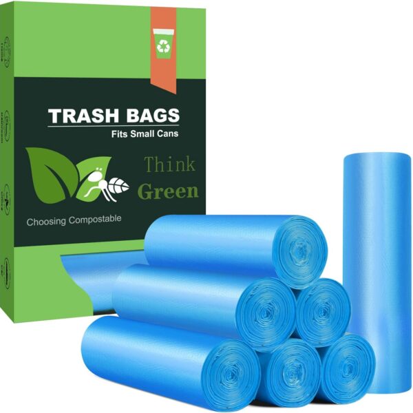 Small Trash Bags, AYOTEE 4-6 Gallon Compostable Garbage Bags, 4 Gallon Trash Bags, Unscented Leak Proof Biodegradable Bags Wastebasket Liners, Bathroom trash bags, Compost Bags (100 Counts, Blue)