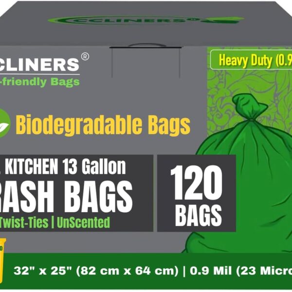 Tall Kitchen Biodegradable Trash Bags 13 Gallon (120 Bags) Eco-friendly Medium Green Garbage Bag 55 Liter Landfill-Friendly Can Liners Portable Camping Toilet Bags Made With epi (120 count)