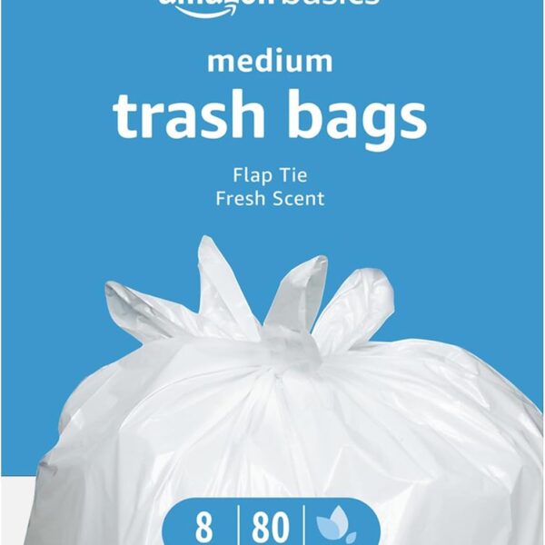 Amazon Basics 8 Gallon Flap Tie Trash Bags, Fresh Scent, 80 Count