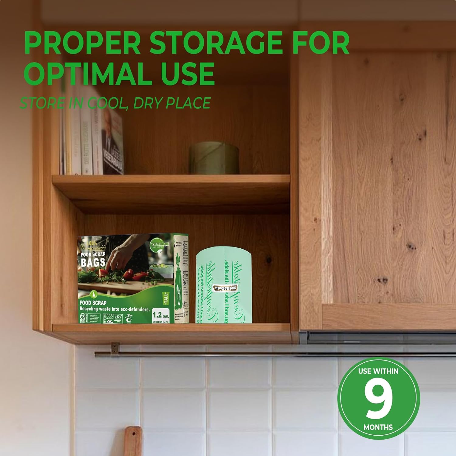 【Eco-friendly for Environment】T.FORING compostable bags are made from corn starch and plant-based materials,no polyethylene.Bags are durable, nontoxic, easy to use and great for the environment.T.FORING 2.6 gallon trash bags decomposes fully into CO2, water and organic biomass after 6-12 months, leaving no traces of plastic in the environment.
