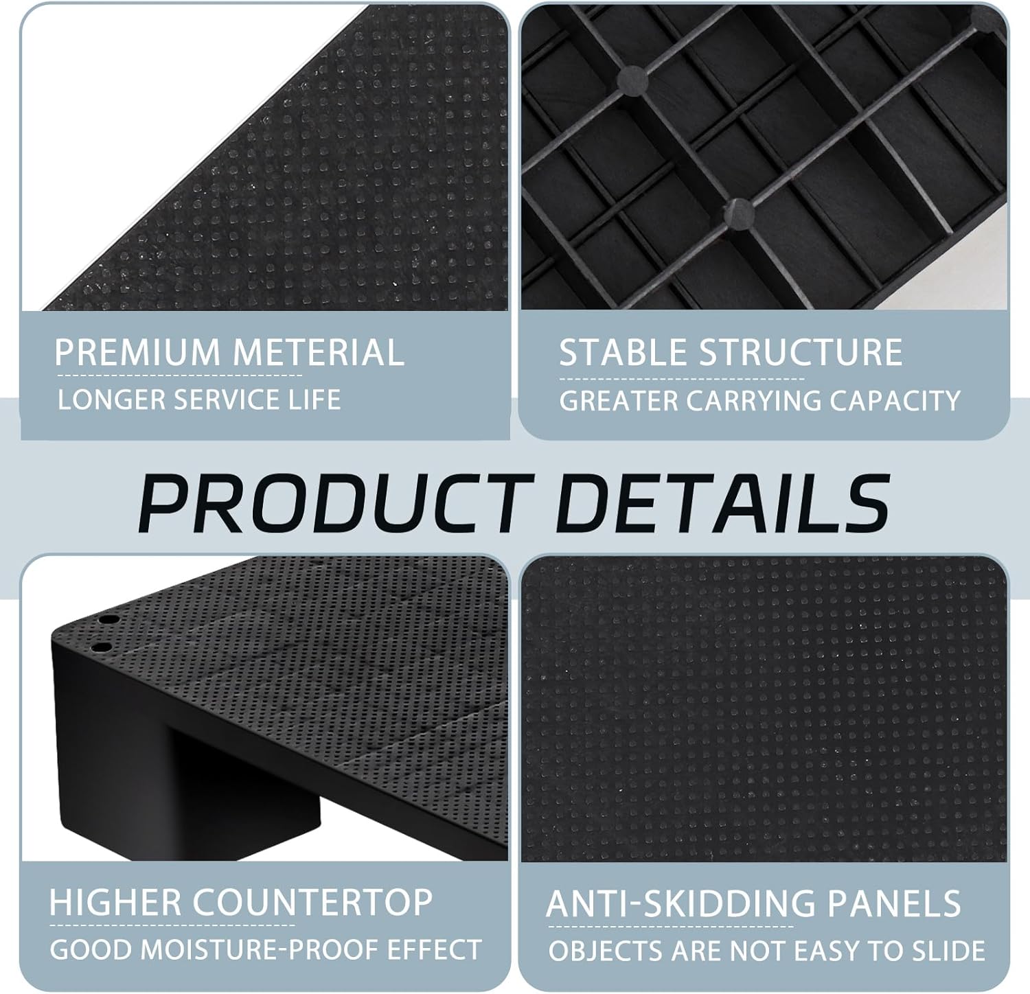 1 Pcs Plastic Pallet for Basement Storage Easy Stack Lightweight Floor Pallet Display Flooring Room Supermarket Christmas, Support up to 2000 Lbs (20” L X 20” W X 4.7” H,Black)