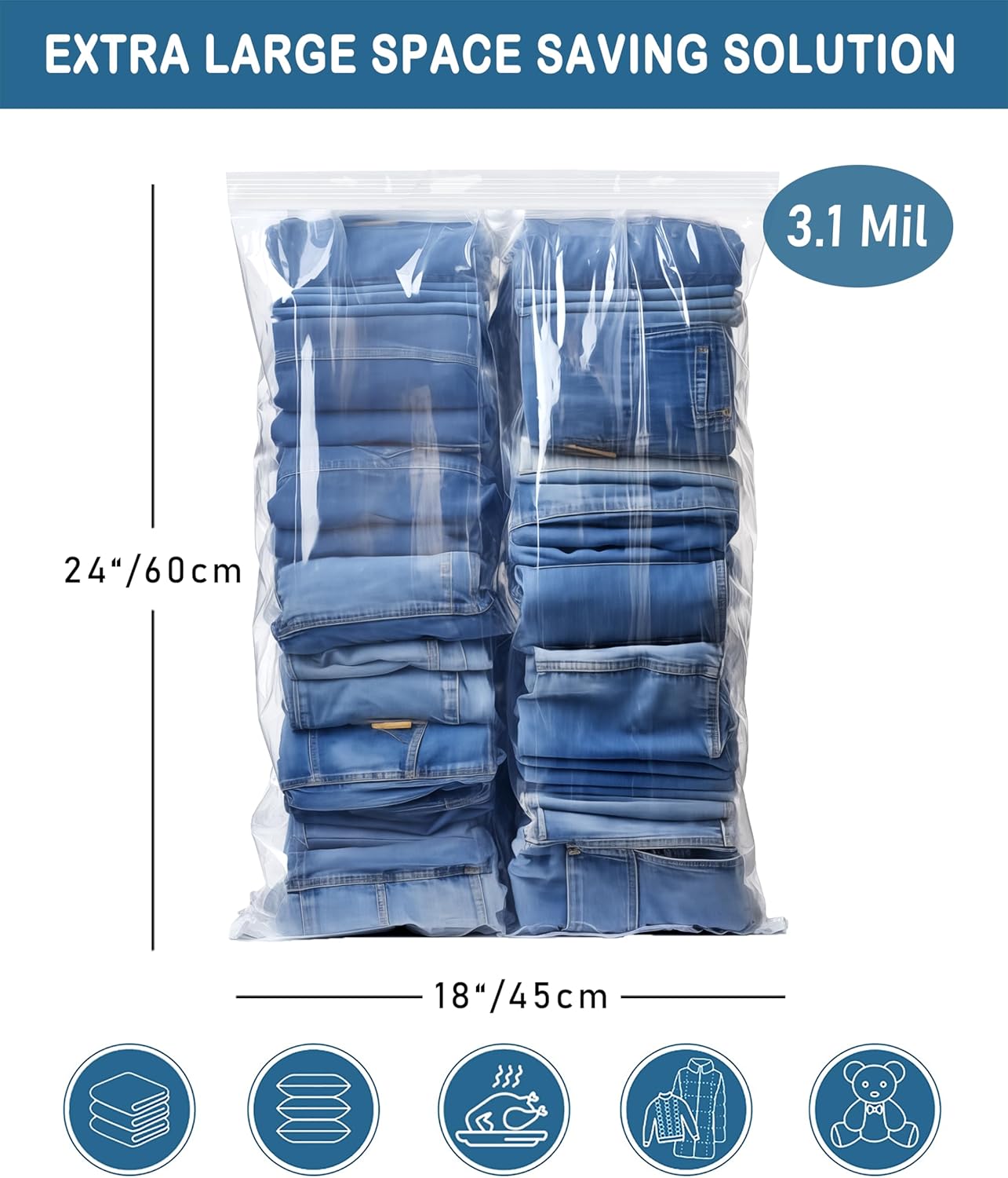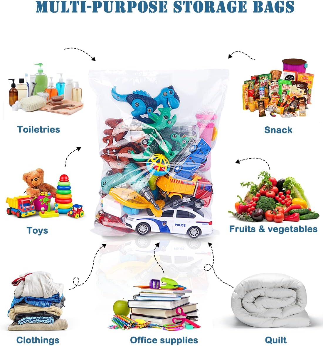 【Perfect for Storing Large Items】The plastic bags are several times thicker than others, and larger size means that they can hold more items without falling. And the high-quality zip locks foster long term sealability and protect the contents from dust, bugs, moisture, and mildew