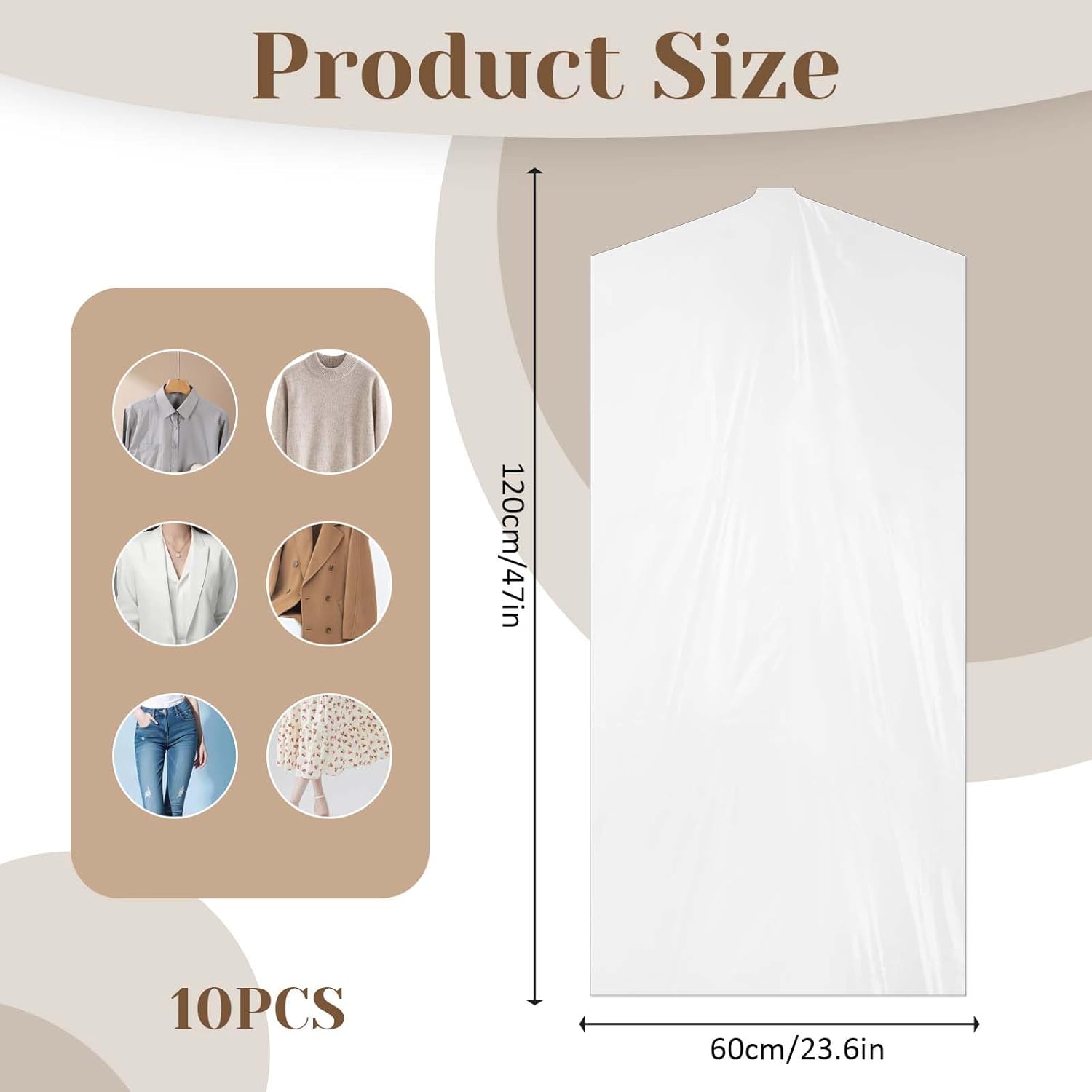 10 Pcs Garment Bags 60 x 120 cm Plastic Garment Bags Dry Cleaner Bags Plastic Clear Garment Bags For Hanging Clothes Garment Covers for Dry Cleanerhome Storage Travel
