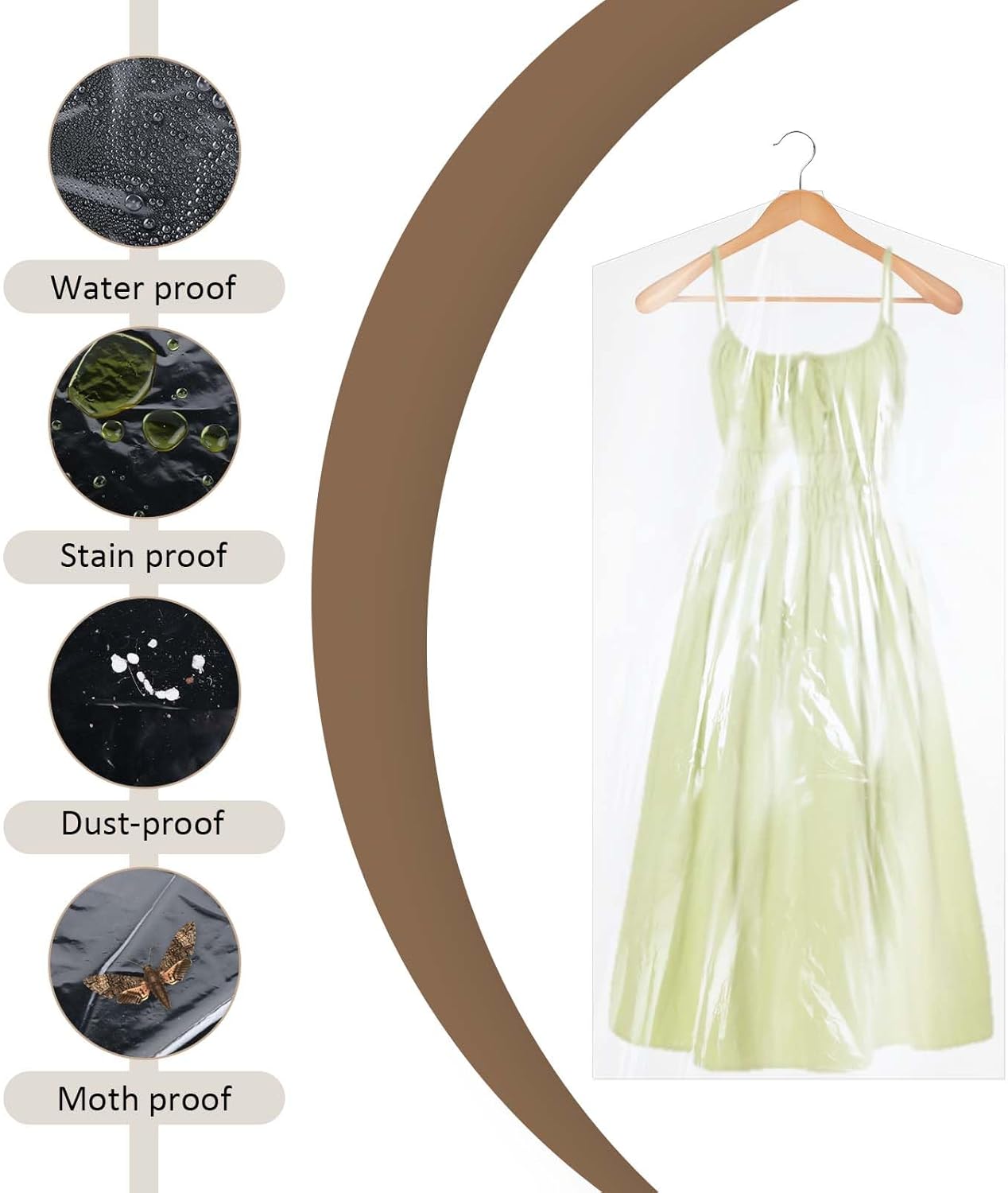 Quality Materials: These clear garment bags are made of quality plastic, smooth and lightweight, safe and waterproof, reusable and reliable, and can serve you for a long time