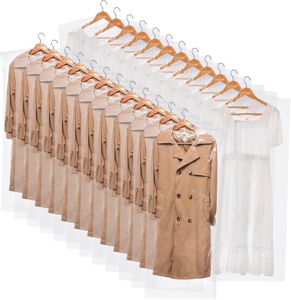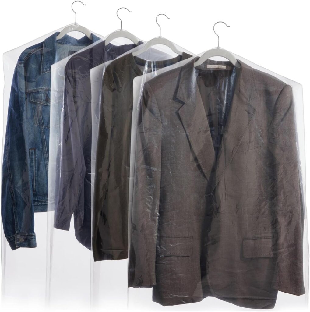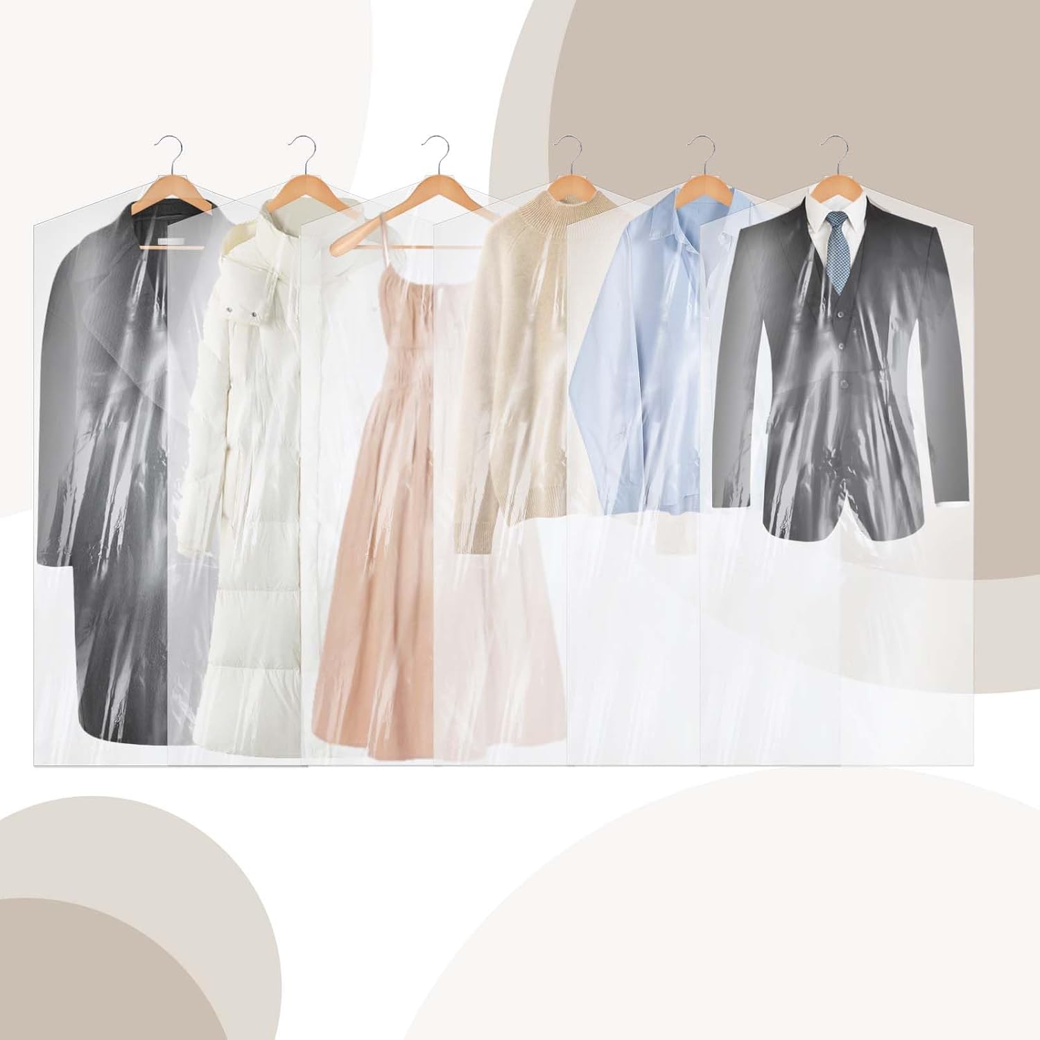 Suitable Size: The size of these dry cleaner bags is 120 x 60 cm / 47 x 23.6 in, with plenty of space to perfectly cover jackets, coats, sweaters, skirts, suits, shirts, etc.