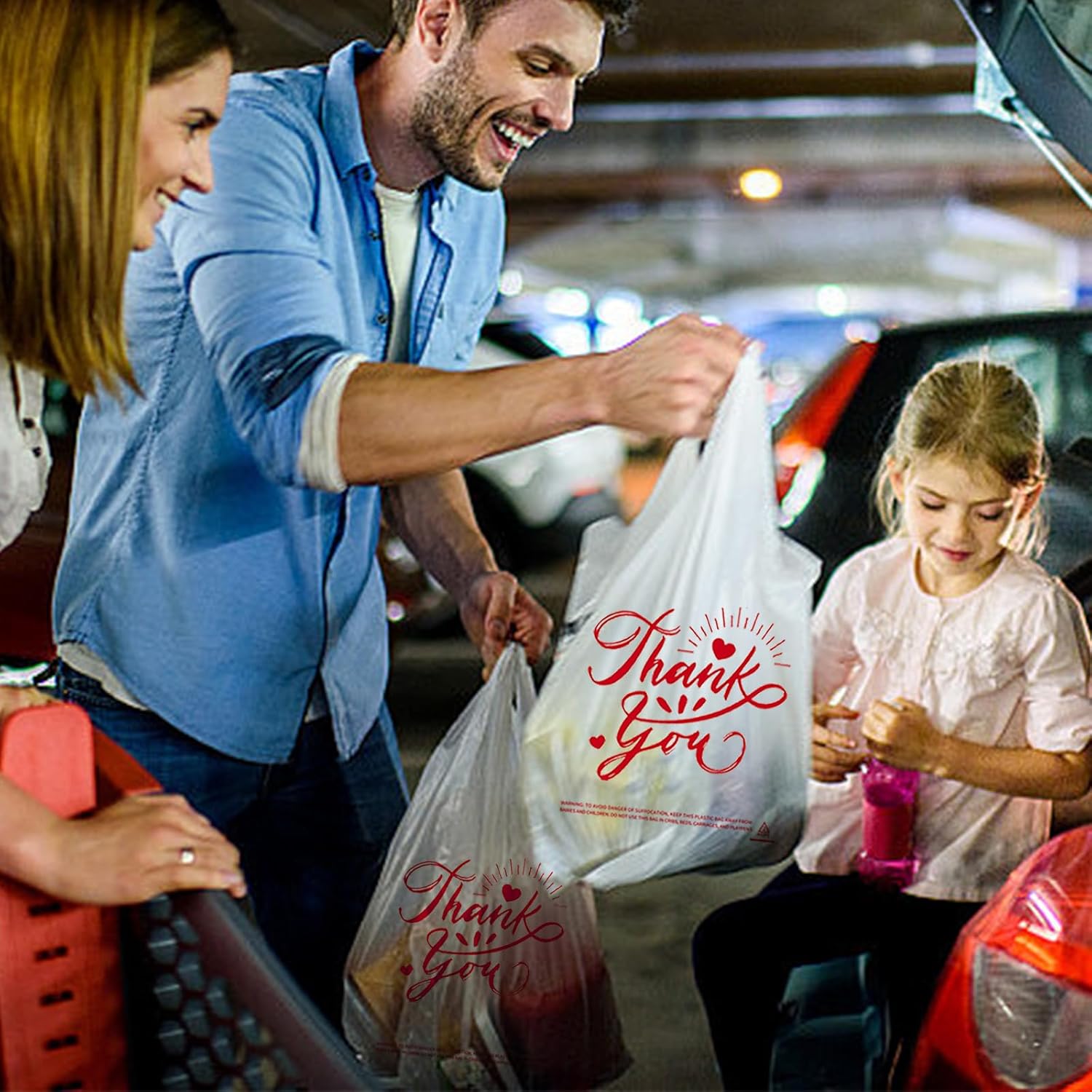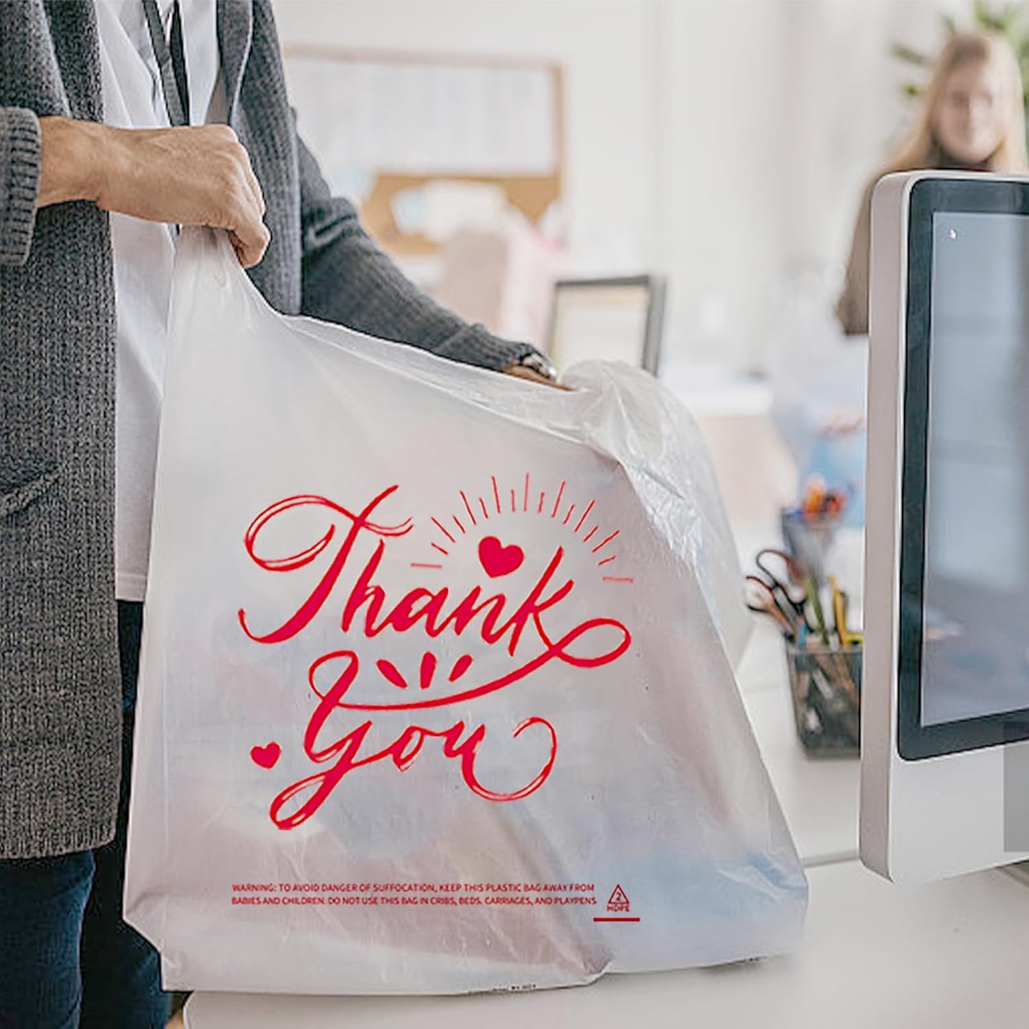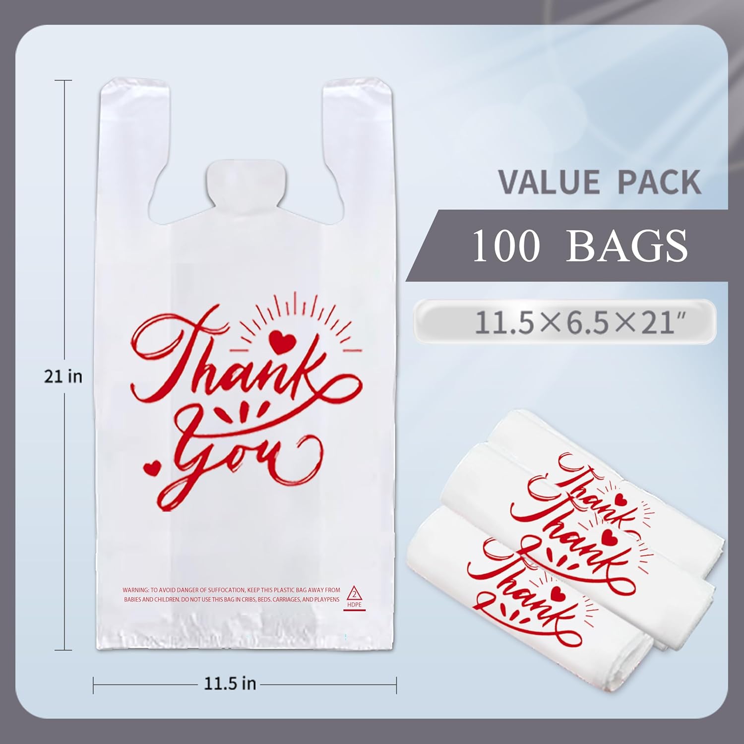 100/300-Pack White Thank You T-Shirt Bags, 11.5×6.5×21 Inches, Reusable Grocery Retail Packaging for small Business